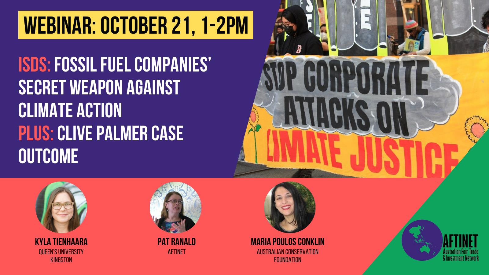 AFTINET webinar: ISDS - Fossil fuel companies’ secret weapon against climate action and Clive Palmer case outcome
