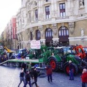 A caravan of peasant farmers and ranchers with their tractors left from different parts of the province of Bizkaia in Bilbao (Spain) to Bilbao to express their rejection of the free trade policies being promoted by the European Union.
