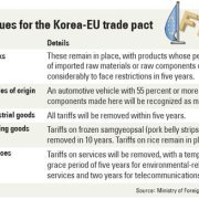 The Korea-EU free trade agreement, if it crystallizes, is set to deal a blow to Korea’s agricultural sector, since the average tariff on imported farming products is a relatively high 41.6 percent.