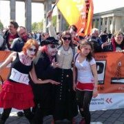 German Pirate Party invited everyone for a Zombie Walk to protest against the draft contract of the secretively crafted transatlantic trade agreement (TTIP) in Berlin on Easter Saturday.