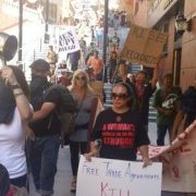 Arrests were made Saturday as the Trans Pacific Partnership Agreement protest marched on the Gaslamp district in downtown San Diego.
