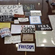 Talk of a major international protest at the Dallas negotiations on May 8-18th for the Trans-Pacific Partnership dominated the discussion at the Occupy Dallas Six-Month Anniversary Celebration at Pioneer Park downtown on Apr. 7th.