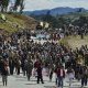 About 30,000 people marched peacefully in Colombia’s capital Thursday in support of a 10-day protest by small farmers against free trade agreements until pandemonium broke out. -