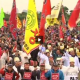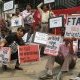Chanting slogans, shaving their heads and painting banners using their own blood, more than 10,000 farmers gathered in downtown Seoul for the biggest rally by the farmers this year.
