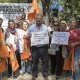 Un grupo de manifestantes convocados por la Asamblea “Argentina mejor sin TLC” protestó frente al “Foro de Inversión y Negocios de la Argentina”, convocado por el gobierno para atraer inversiones de grandes compañías extranjeras.