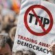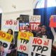 Los manifestantes aseguran que el TPP se ha hecho a escondidas de los pueblos y que traerá consecuencias negativas para el ambiente. -