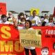 Decenas de personas se congregaron frente al Hotel Marriott, donde se realizan las negociaciones del acuerdo comercial.