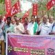 A protest was staged to condemn the free trade agreement between India and United States of America in the fields of animal husbandry, poultry and other sectors. -